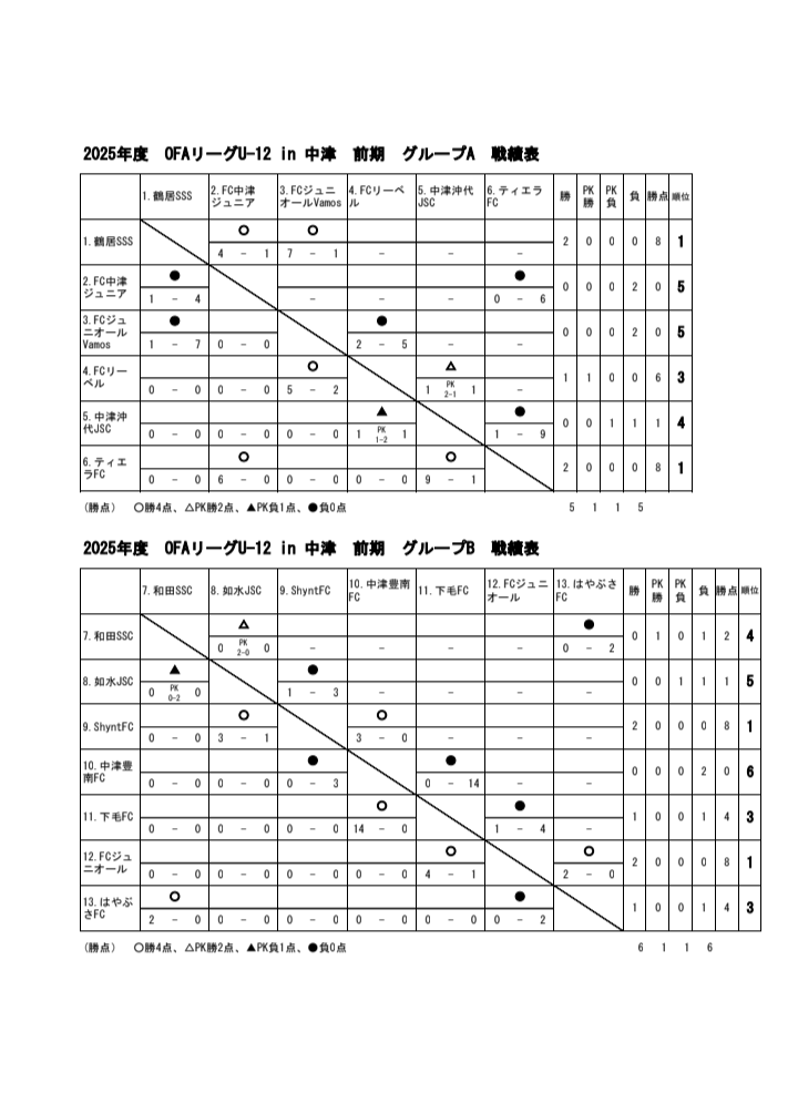 4種委員会(ジュニア)第49回中津リーグ前期 U-122025.04.20 2025年4月13日、D-ACTスポーツパーク永添で第49回中津リーグ前期 U-12が開幕しました。第1節、第2節の試合結果を公開します。2025.04.13 OFAU-12リーグ 戦績表 Postシェア4種委員会(ジュニア)第56回KYFA九州U-12サッカー大分県大会 中津...第49回中津リーグ前期 U-12
